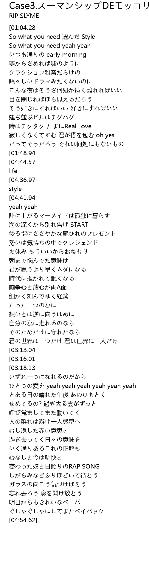 | [04:46.90][04:36.97][04:27.12][04:17.15][03:05.45][02:55.54][02:06.08][01:56.19] | それぞれが選んだ style |