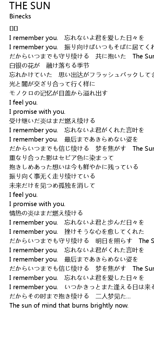 | だからいつまでも守り续ける 明日を照らす The Sun. | |