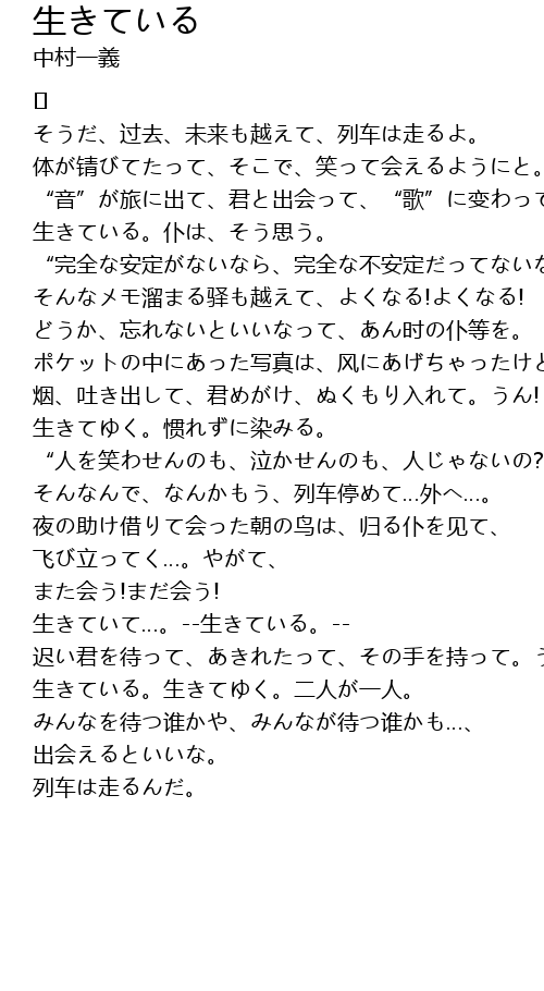 | 生きている。仆は、そう思う。 | |