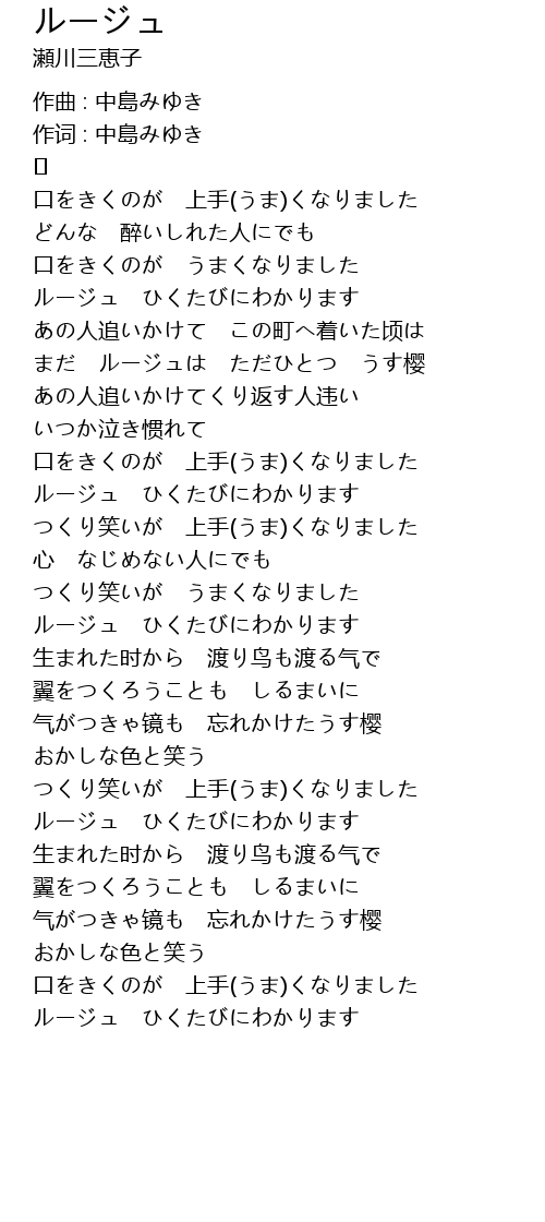 まだ ルージュは ただひとつ うす樱 |