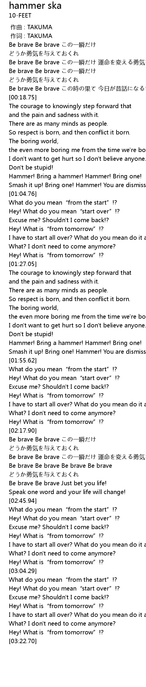 | [02:41.03] | Be brave Be brave Just bet you life! |