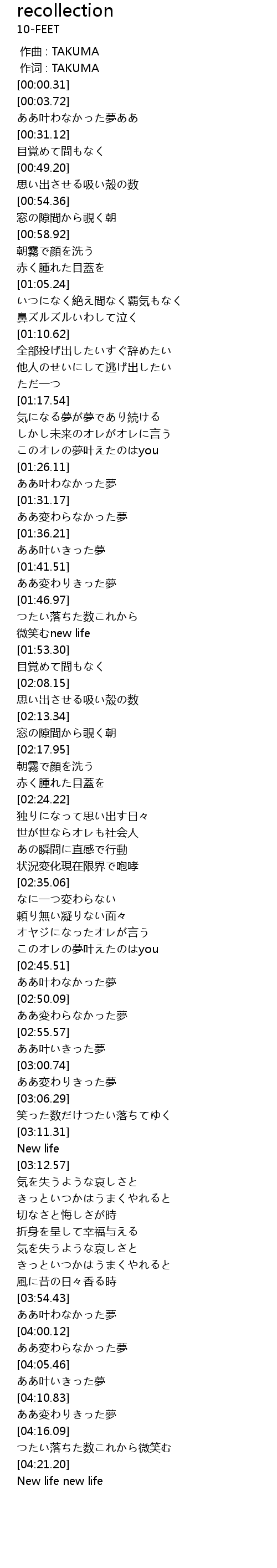 | [03:12.01] | New life |