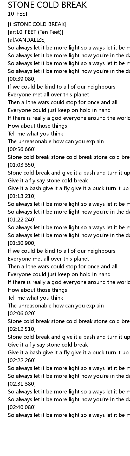 | [02:07.580] | Stone cold break stone cold break stone cold break |