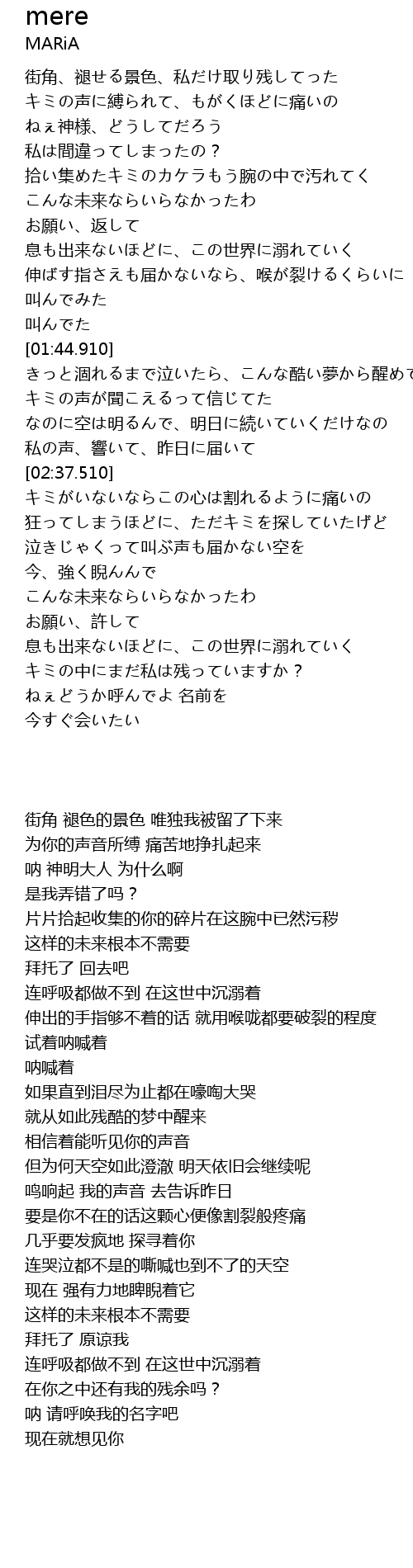 | [02:23.420] | 私の声、響いて、昨日に届いて |