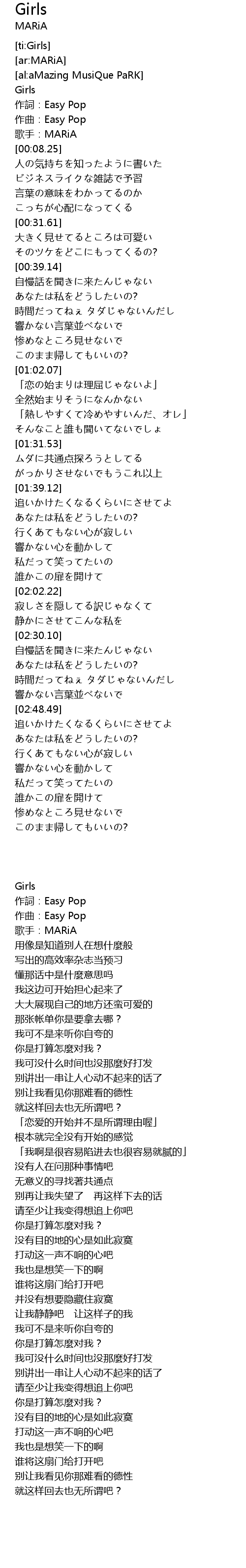 | [00:00.42] | Girls |