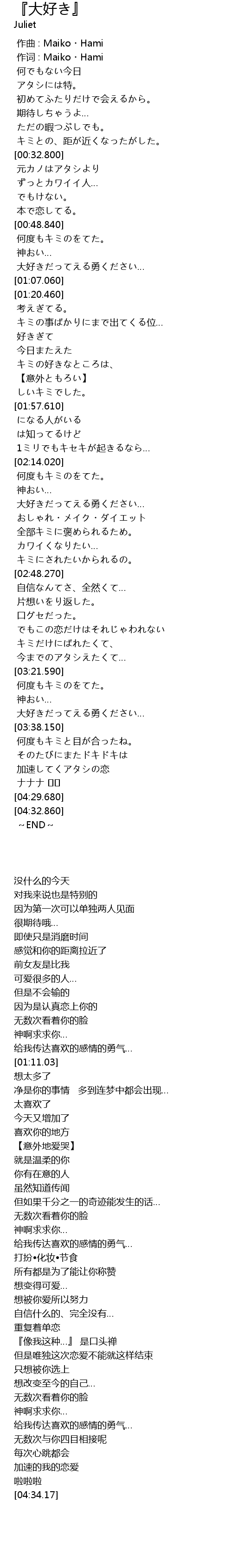 作词 : Maiko・Hami |
