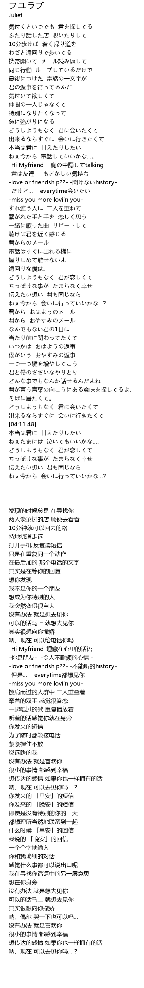 | [01:42.61] | -君は友達- -もどかしい気持ち- |
