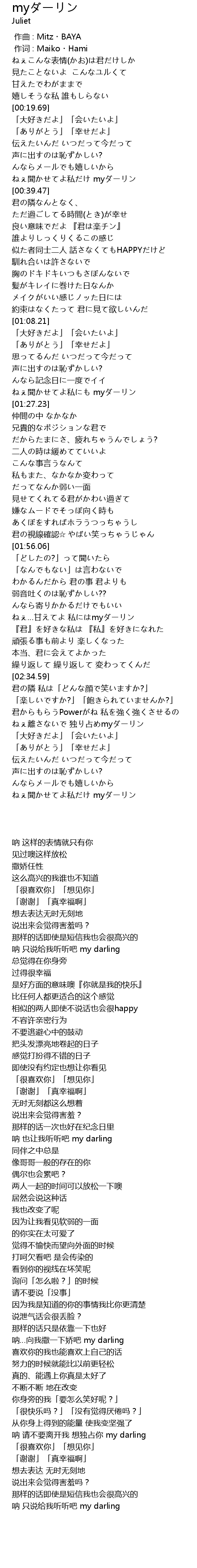 | [01:23.26] | ねぇ聞かせてよ私にも myダーリン |