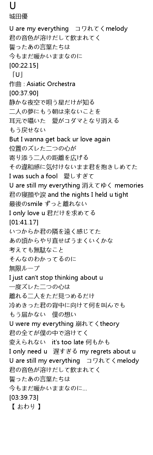 | [00:00.00] | U are my everything コワれてくmelody |