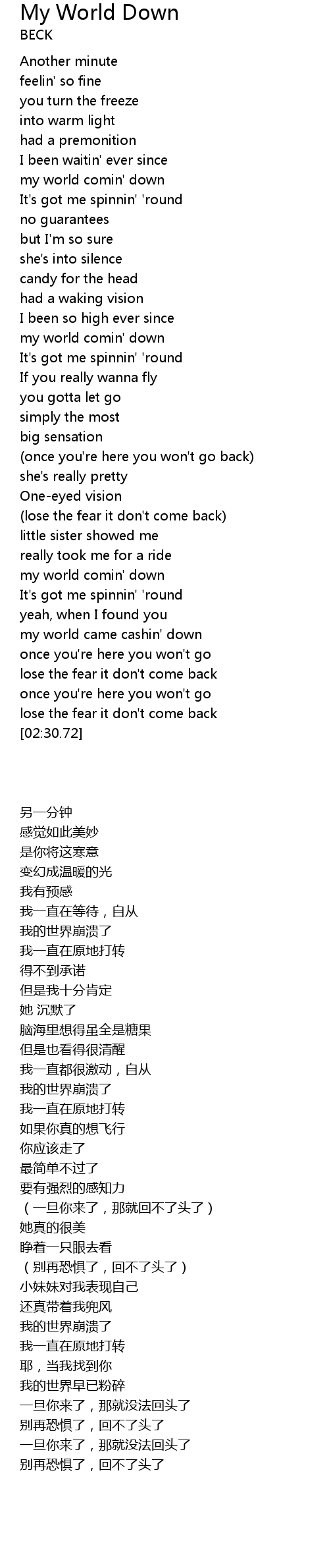 my world comin' down |