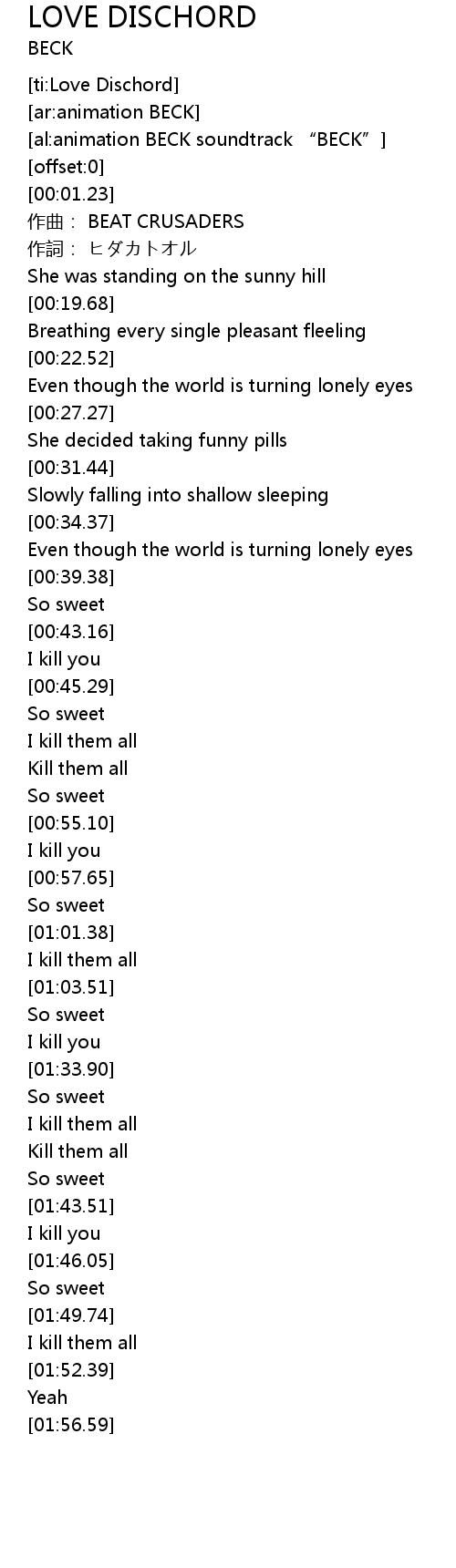 | [00:03.23] | zuo qu: BEAT CRUSADERS |