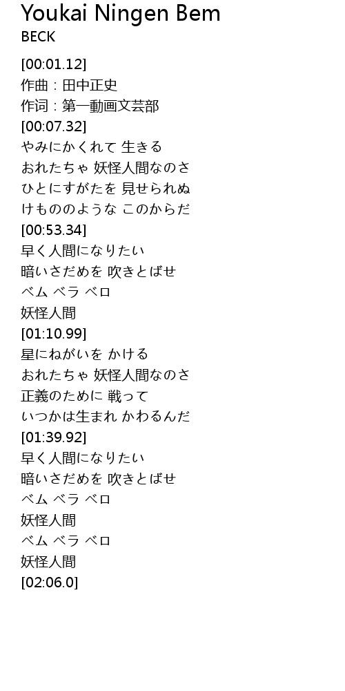| [01:54.75] | 妖怪人間 |