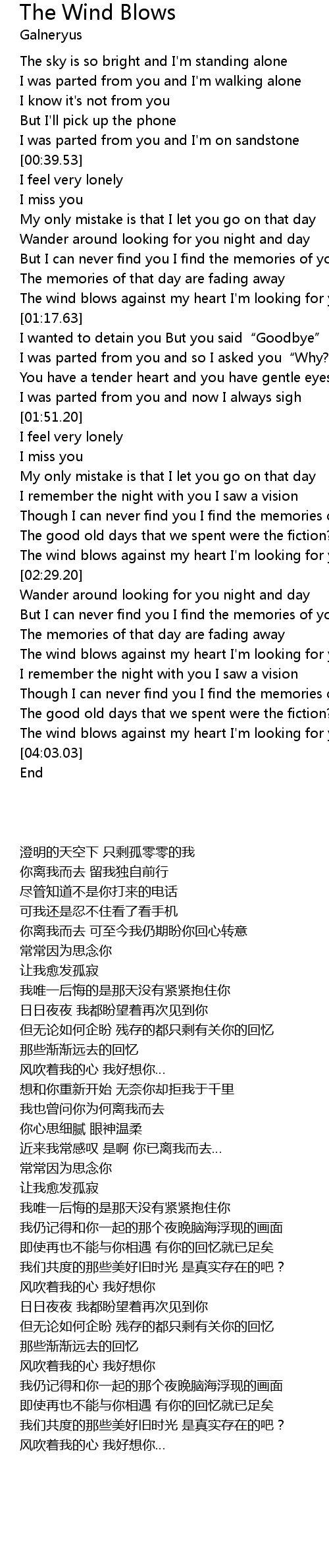 | [03:53.20] | The wind blows against my heart I'm looking for you |