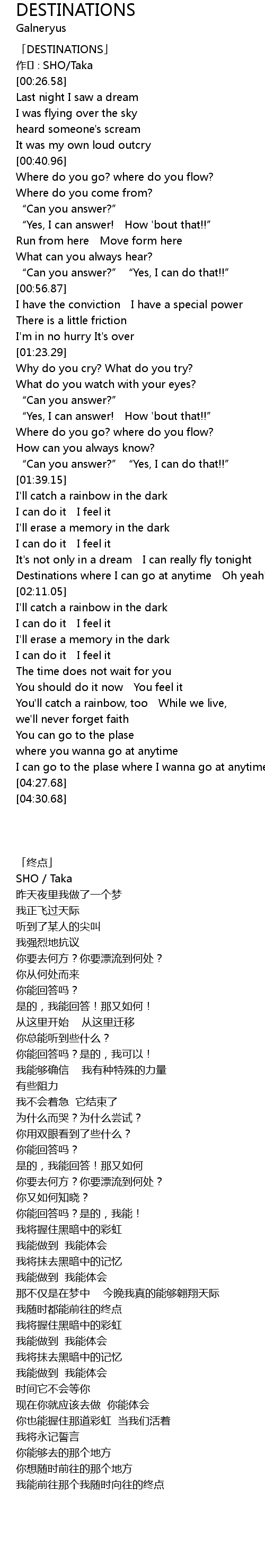 | [00:01.58] | 「DESTINATIONS」 |