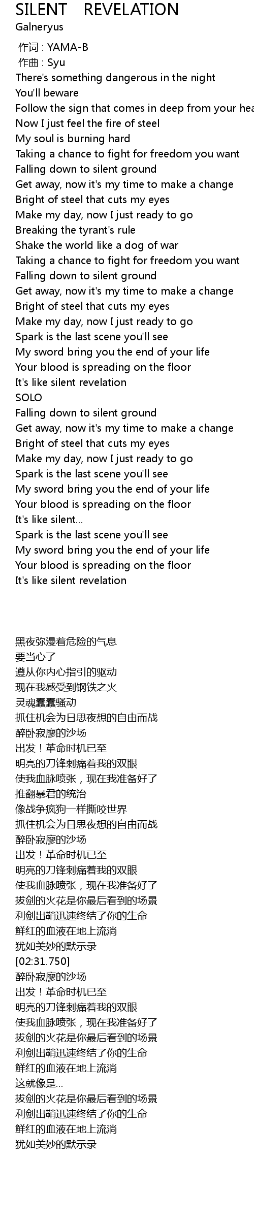 | Song | SILENT REVELATION |