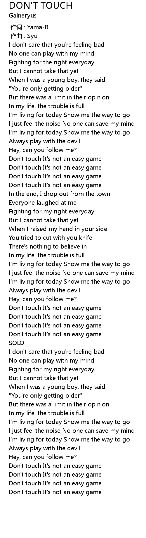 | [02:42.300] | Don' t touch It' s not an easy game |