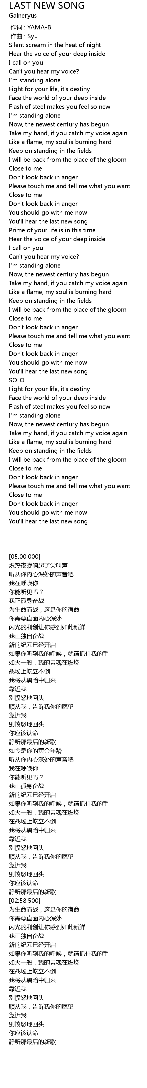 | [00:51.390] | Fight for your life, it' s destiny |