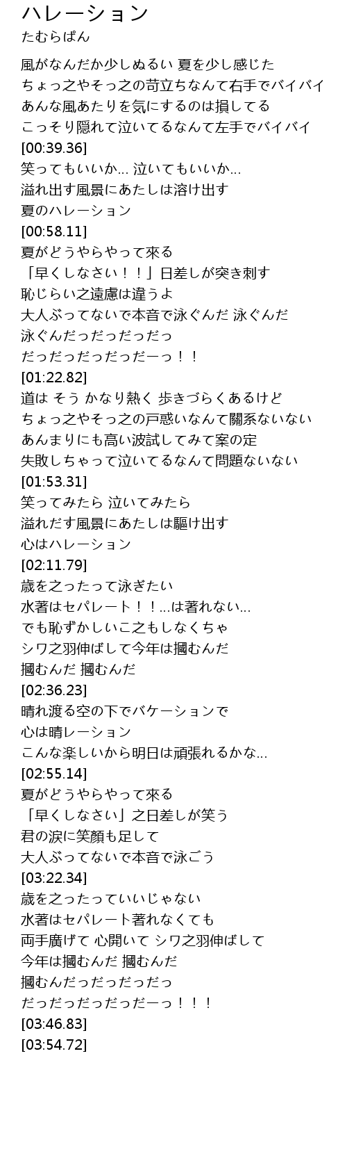 | [00:54.56] | 夏のハレーション |