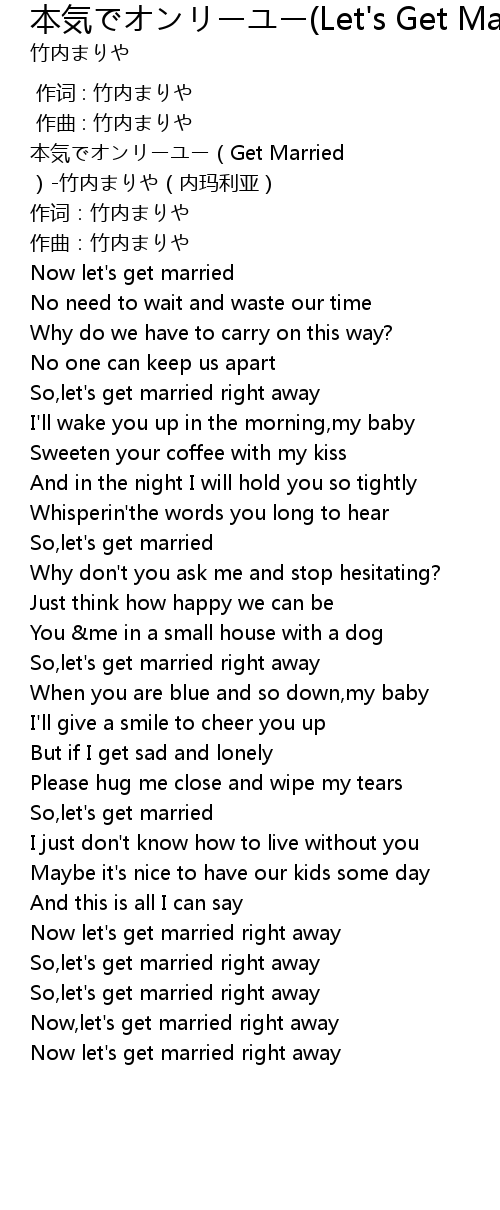 | [00:00.00] | 本気でオンリーユー(Get Married )-竹内まりや(内玛利亚) |