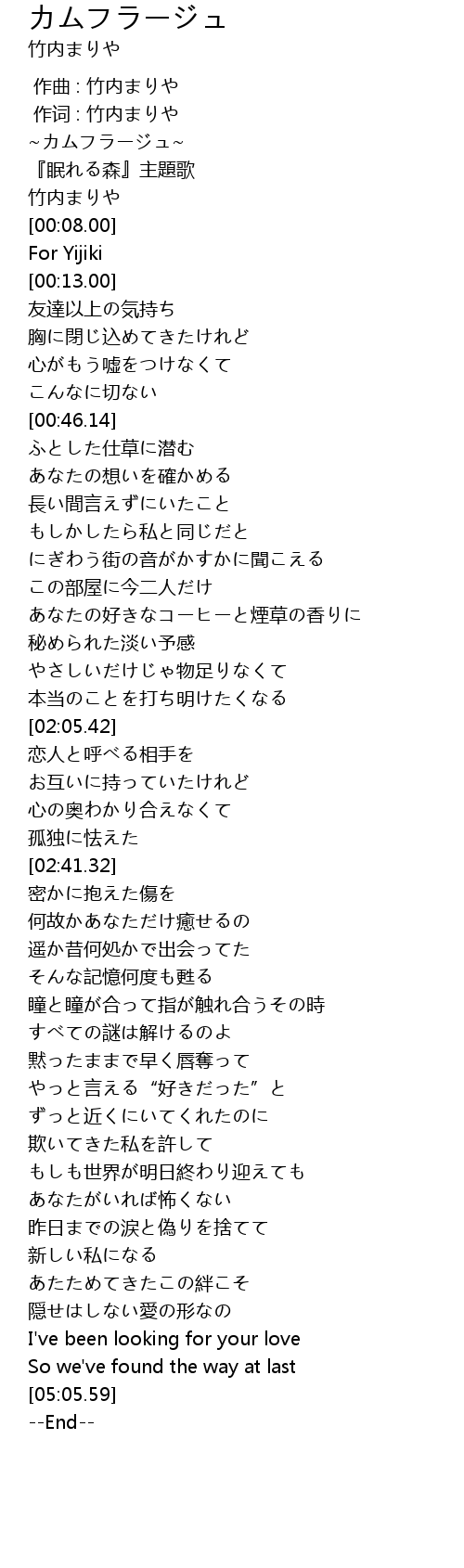| [00:02.00] | ~カムフラージュ~ |