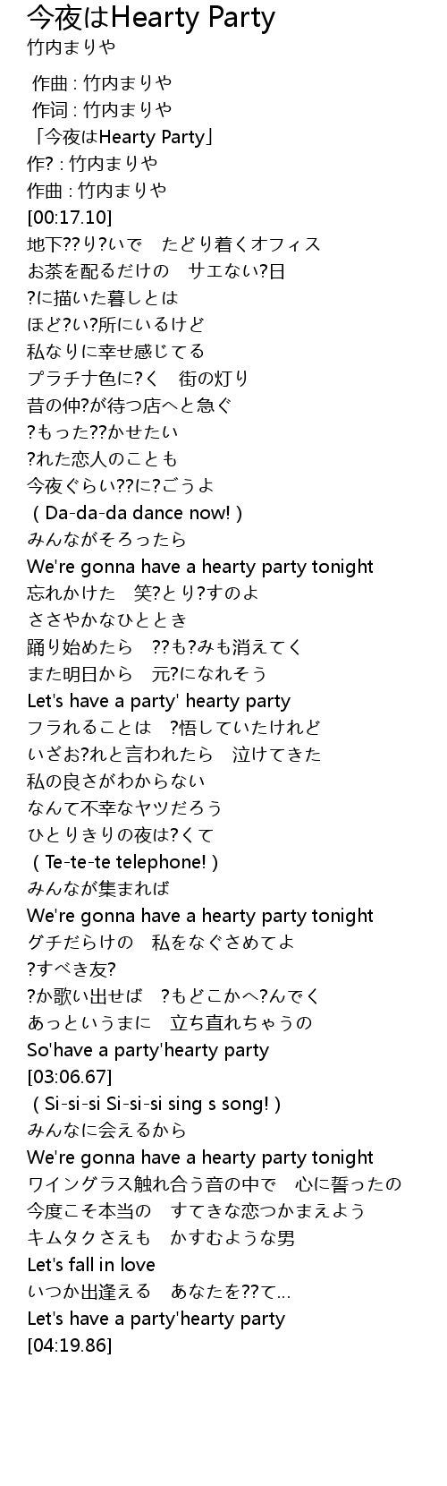 | [01:26.02] | We're gonna have a hearty party tonight |