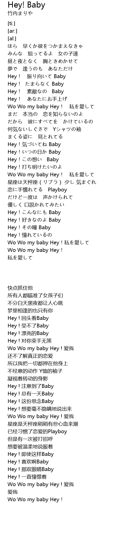 | [00:43.49] | Hey! zhèn xiàng Baby |