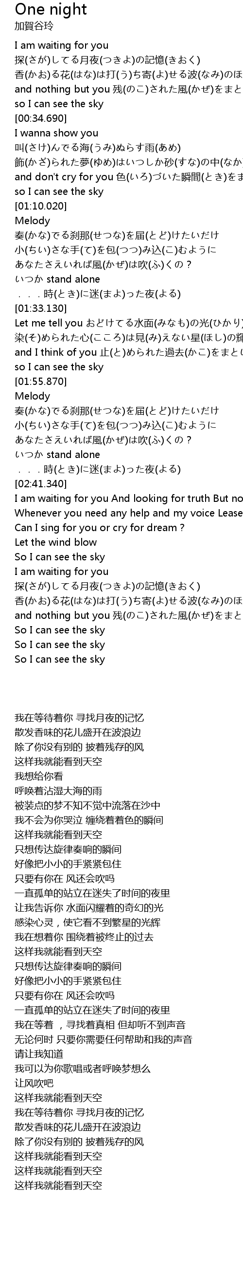 | [02:44.650] | I am waiting for you And looking for truth But not a sound is heard |