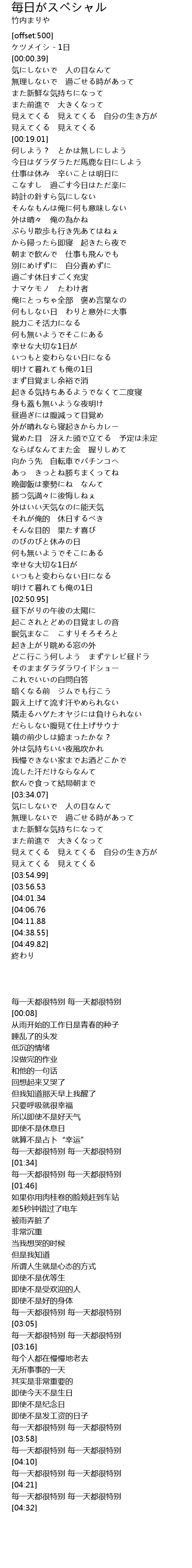 | [00:50.72] | 仕事は休み 辛いことは明日に |