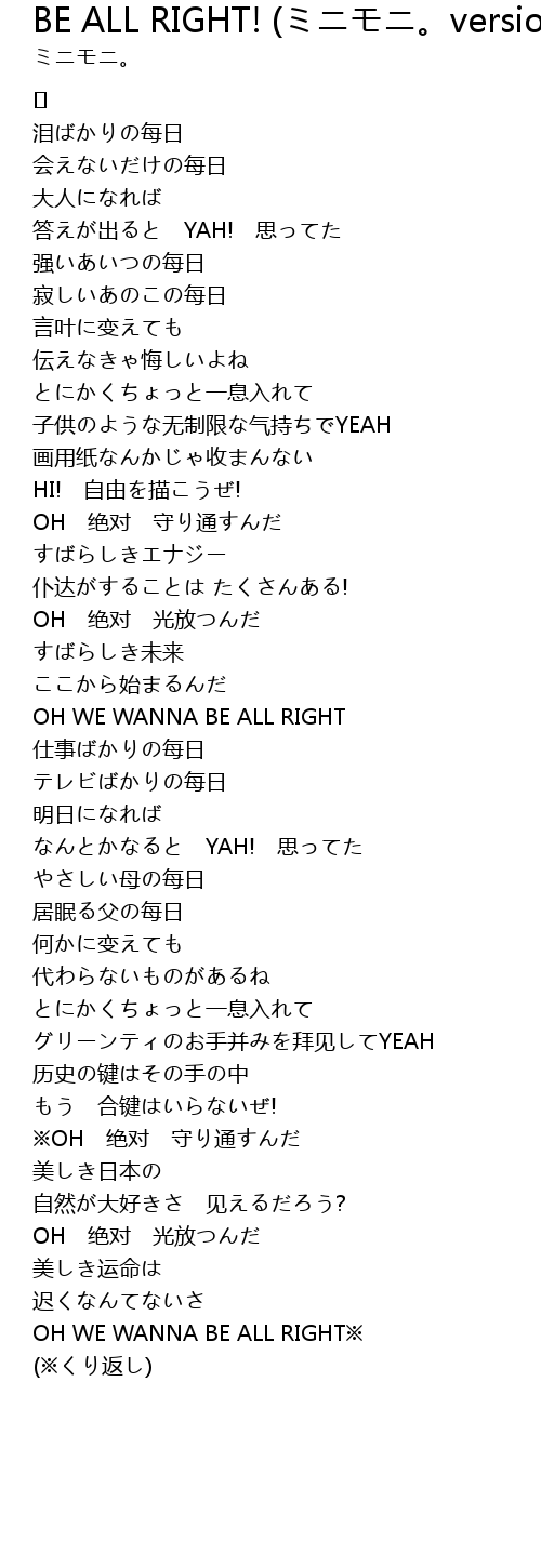 | Song | BE ALL RIGHT! (ミニモニ。version) |