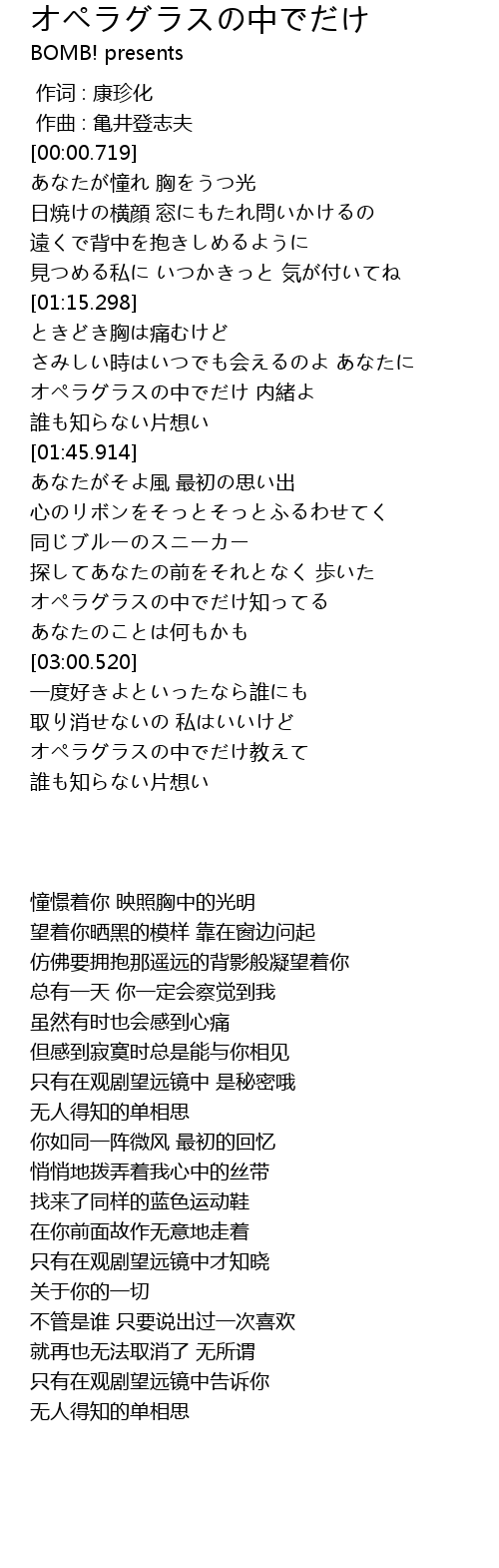 | [03:18.518] | オペラグラスの中でだけ教えて |