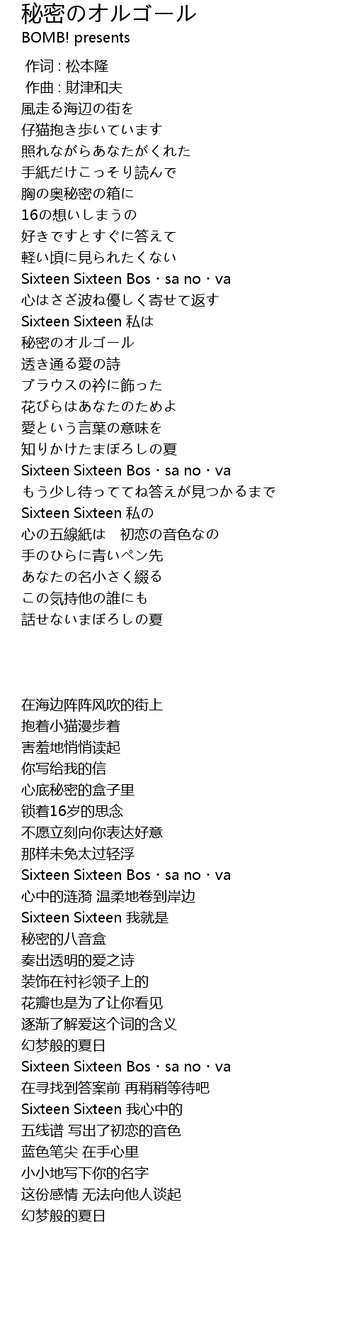 | [02:17.992] | Sixteen Sixteen Bos・sa no・va |