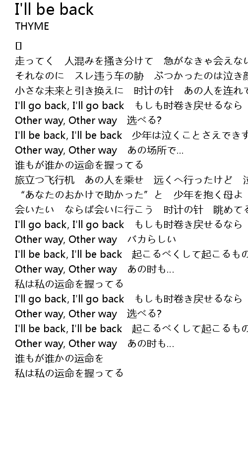 | I'll be back, I'll be back 起こるべくして起こるもの | |