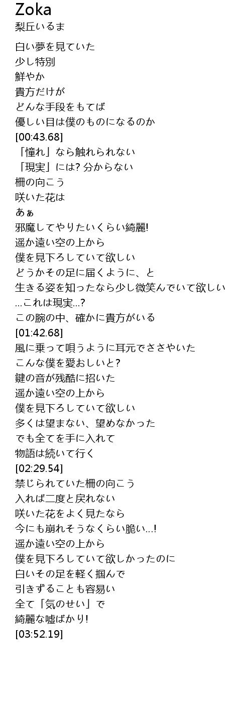 | [00:52.21] | 柵の向こう |