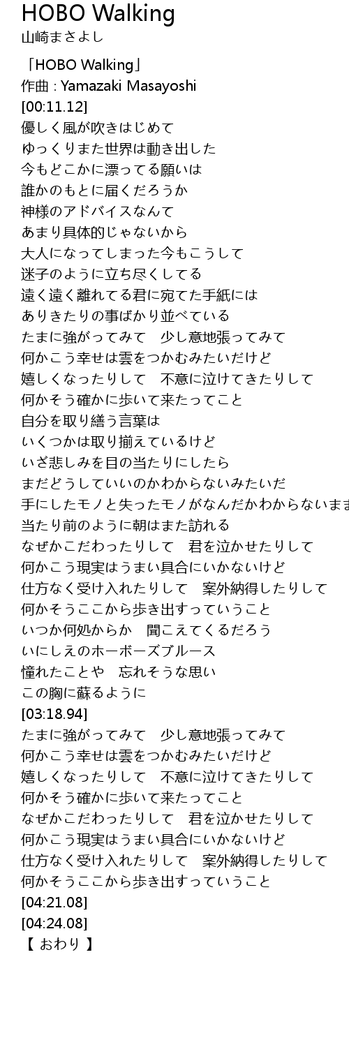| [00:07.12] | 作曲∶Yamazaki Masayoshi |