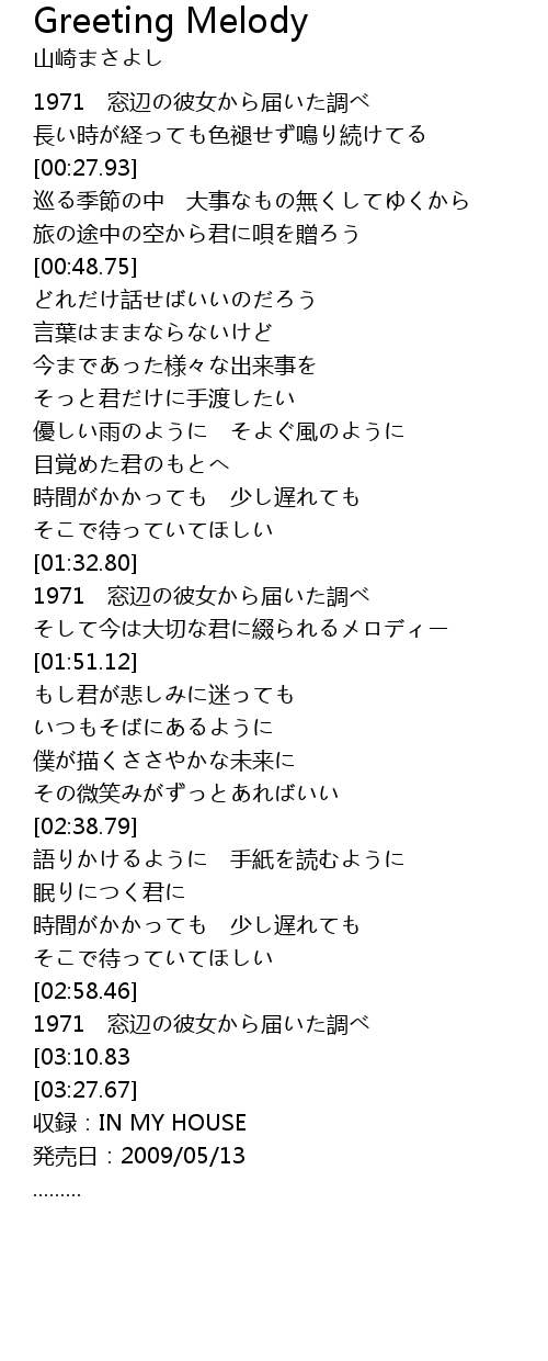 | [03:00.62] | 1971 窓辺の彼女から届いた調べ |
