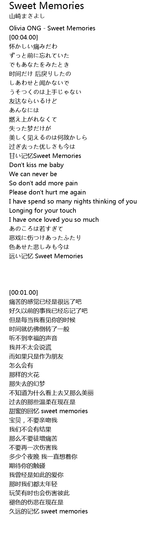 | [00:01.00] | Olivia ONG - Sweet Memories |
