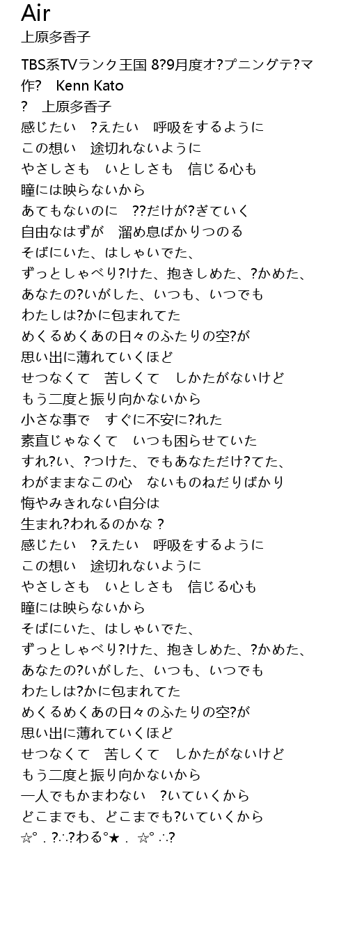 | [01:59.57] | すれ?い、?つけた、でもあなただけ?てた、 |