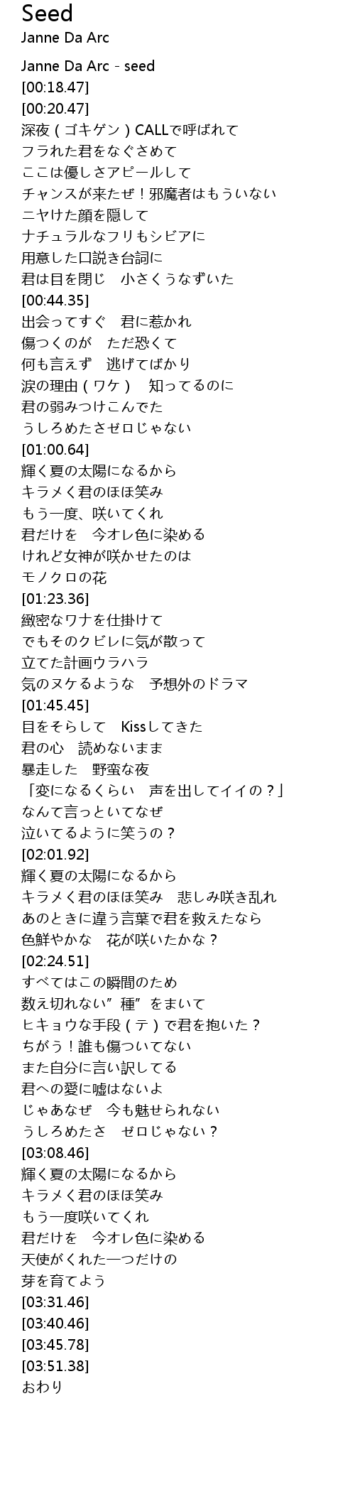 | [00:00.00] | Janne Da Arc - seed |