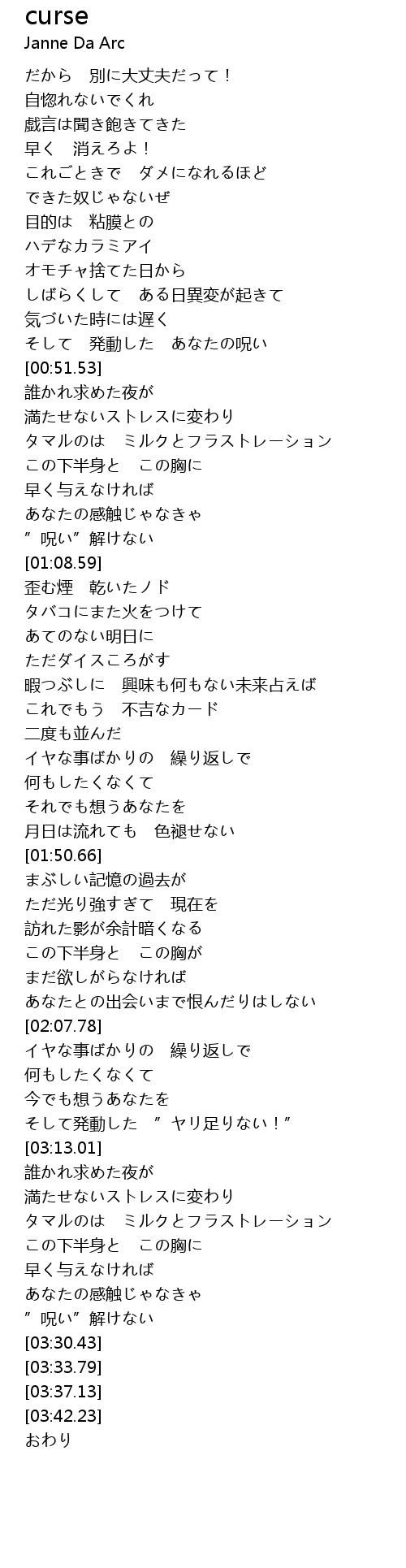 | [00:55.89] | タマルのは ミルクとフラストレーション |