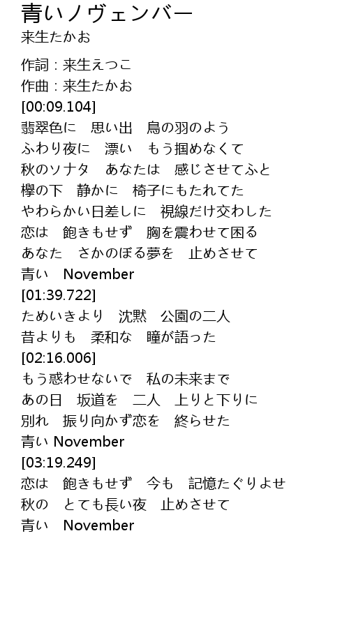 | [00:07.928] | 作曲:来生たかお |