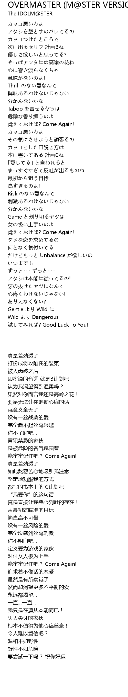 | Album | The iDOLM@STER SP MASTER SPECIAL 961 OVERMASTER |