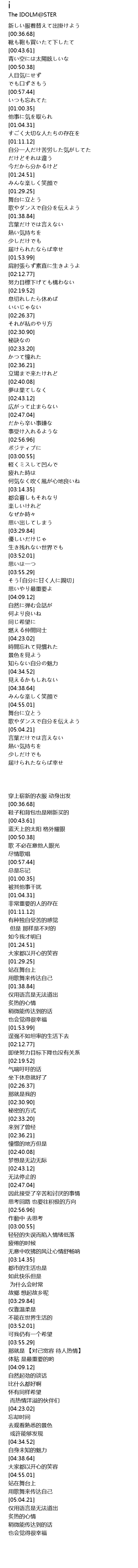| [01:32.63] | 歌やダンスで自分を伝えよう |