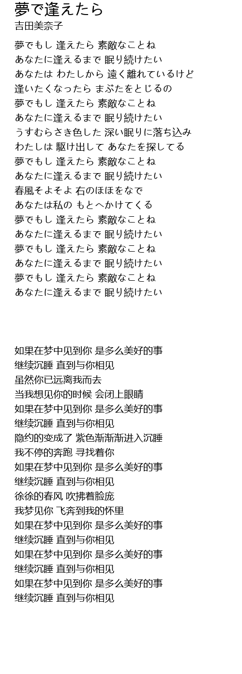 夢でもし 逢えたら 素敵なことね |