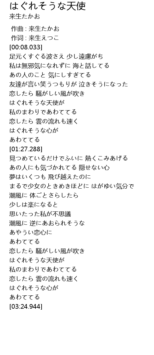 | [02:11.200] | まるで少女のときめきほどに はがゆい気分で |
