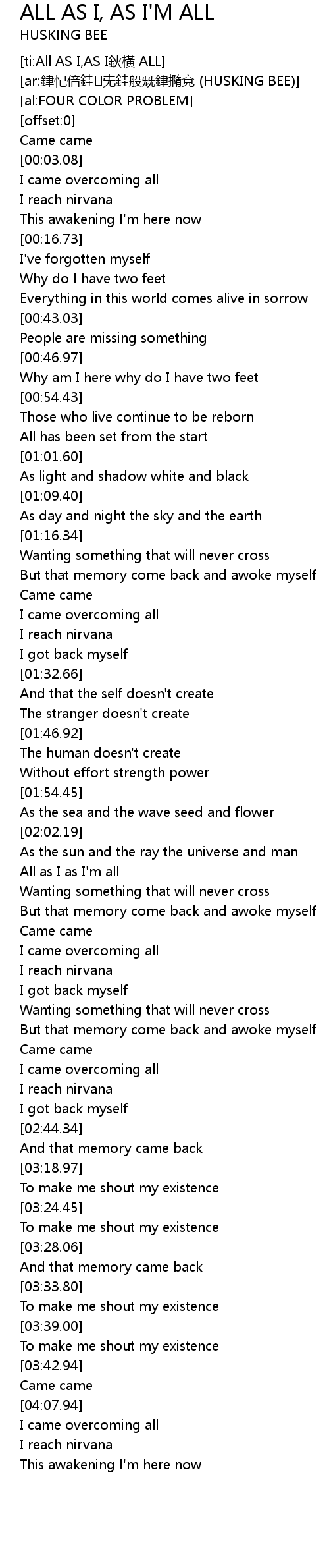 | [02:09.29] | All as I as I' m all |
