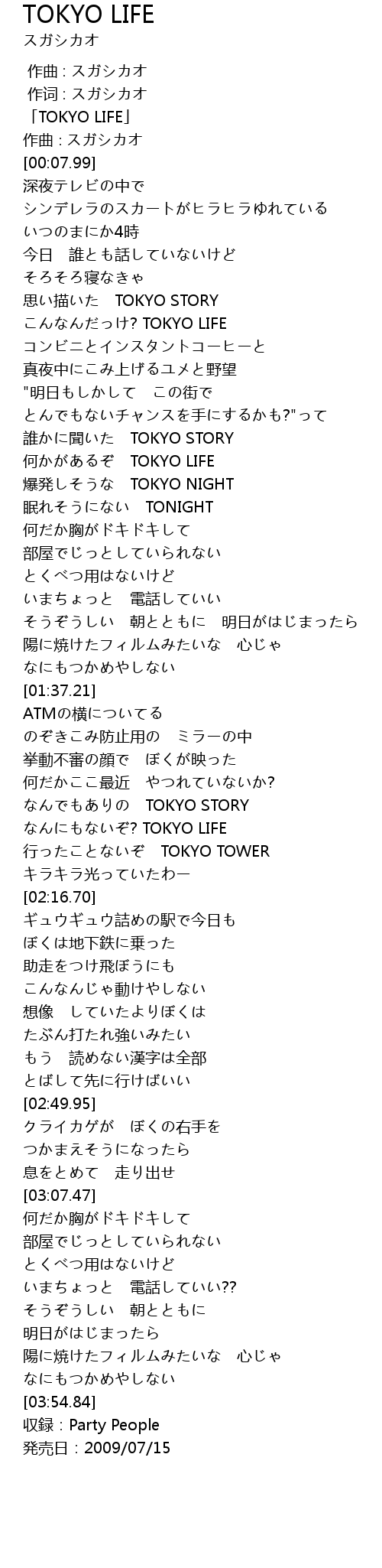 | [00:53.38] | 何かがあるぞ TOKYO LIFE |