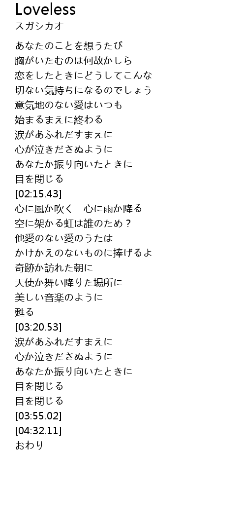 | [02:38.87] | 他愛のない愛のうたは |