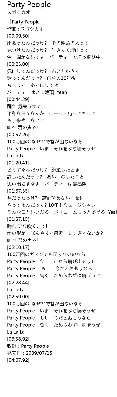 | [03:15.01] | Party People 高く ためらわずに飛ぼうぜ |