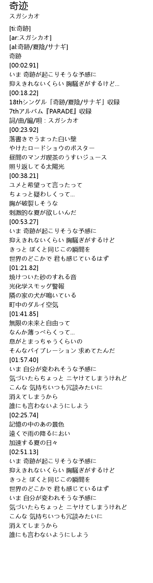 | [00:19.08] | 18thシングル「奇跡/夏陰/サナギ」収録 |