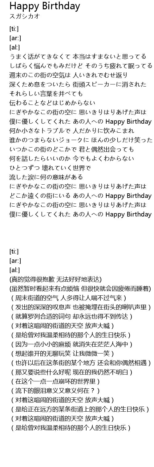 | [03:26.73] | yuǎn jiē rén Happy Birthday |